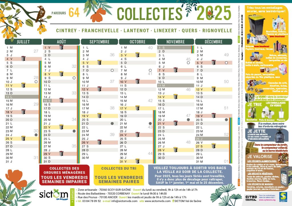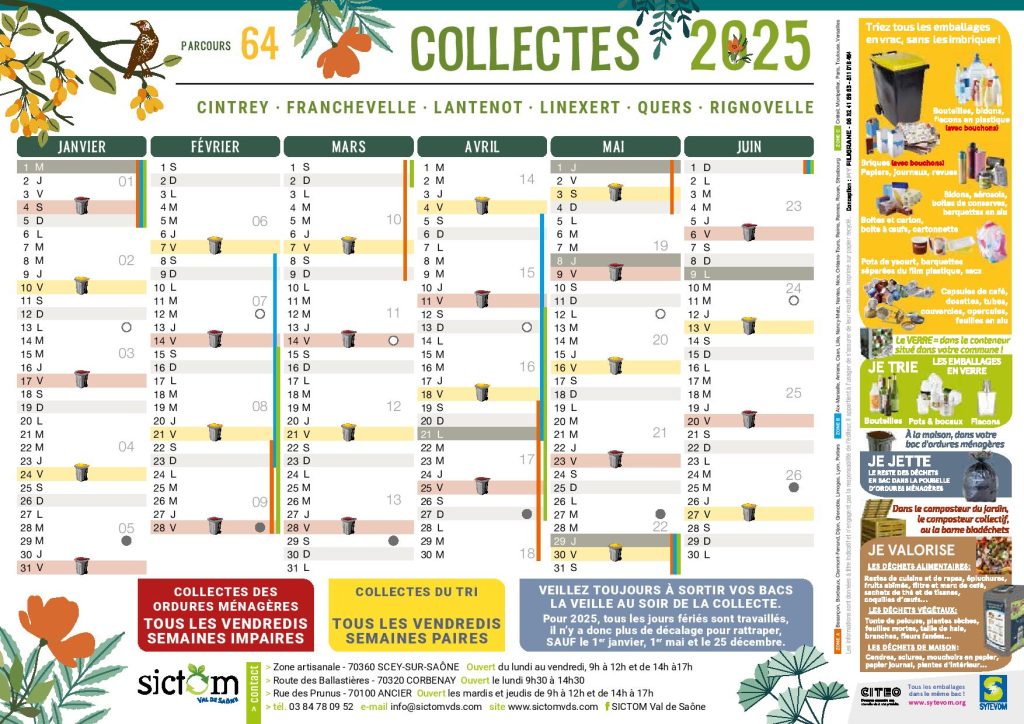 Le SICTOM du Val de Saône s’occupe de la collecte des déchets, vous trouverez leur site ici.